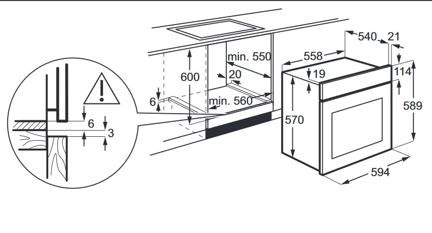 - Розміри ніші для вбудовування (ВхШхГ), см 59.3 x 56.0 x 55.0