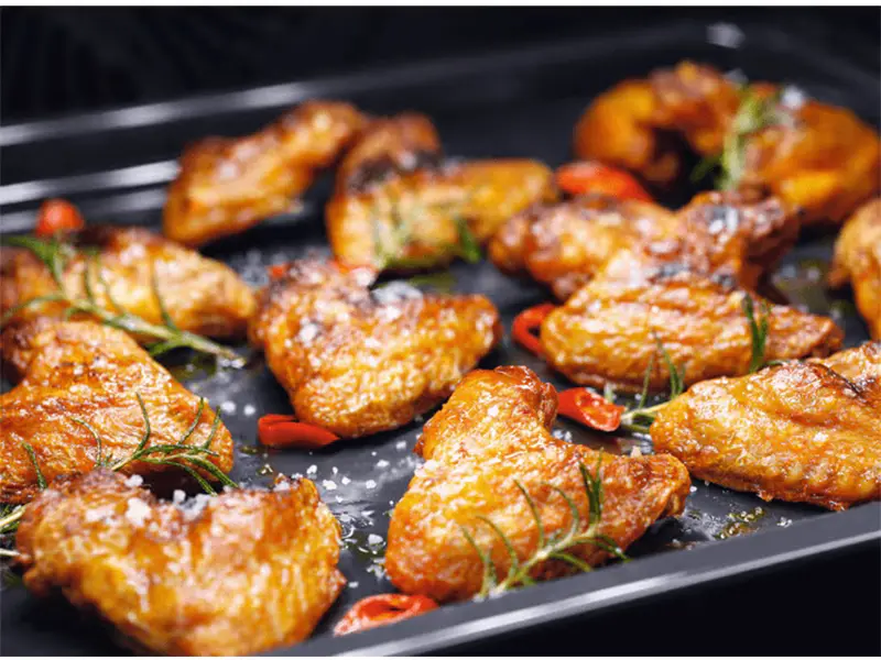 У духовій шафі 600 SurroundCook® Oven все буде приготовлено рівномірно — від смаженої курки з хрусткою скоринкою до делікатних безе. Наша духовка забезпечує постійну внутрішню температуру у всій духовій шафі, оскільки вентилятор здійснює циркуляцію повітря та тепла. Тому вам більше не потрібно перевертати страви або регулювати дека.