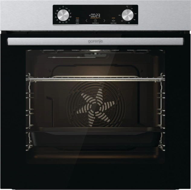 Електрична вбудована духовка Gorenje BSA 6747 A04BG із об’ємом 77 л. Має 23 режиму нагріву, включно з конвекцією, грилем, Turbo-випіканням та функцією піци. Температура до 300 °C.