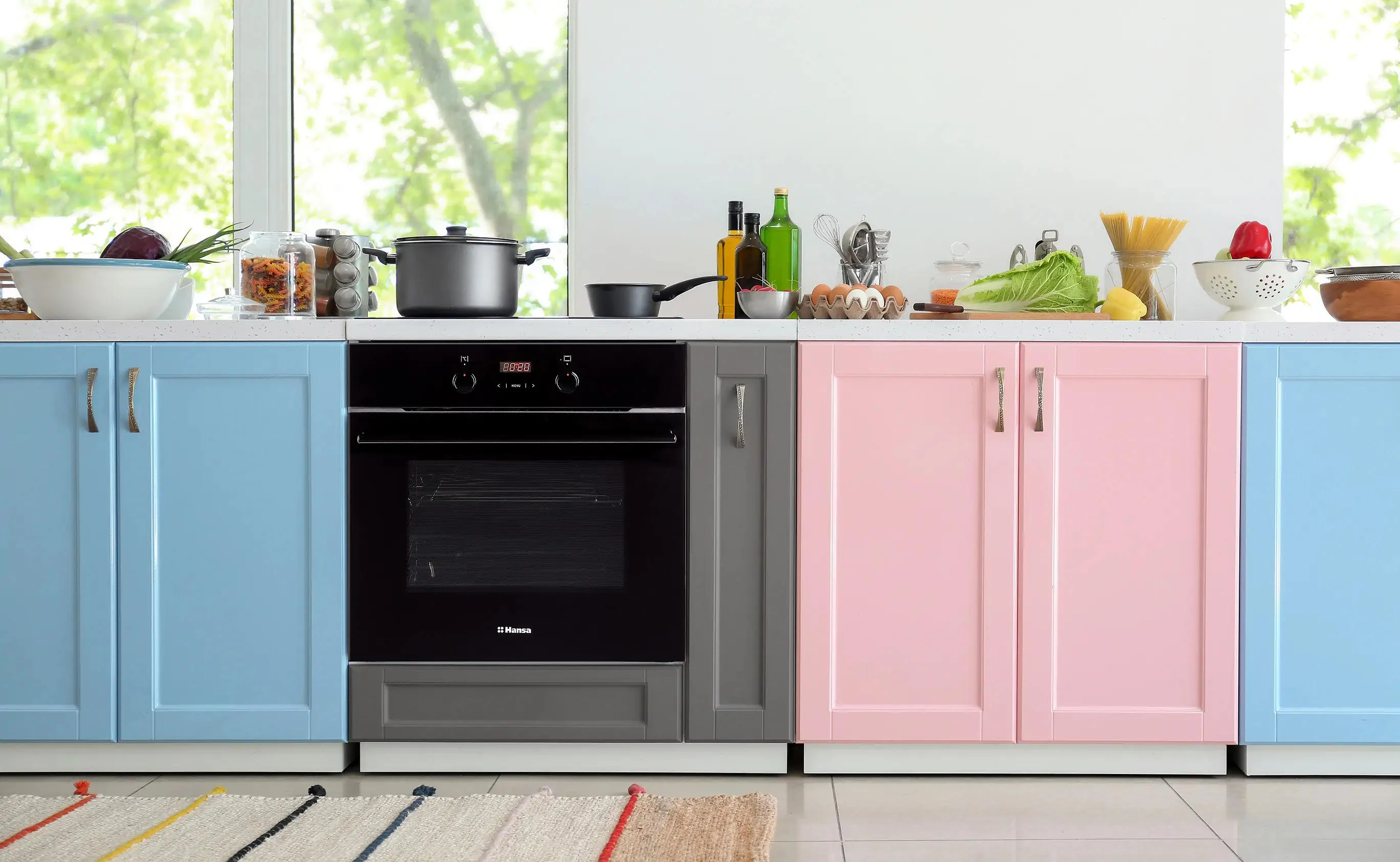Духова шафа Hansa електрична, 60см, 65л, A, гриль, емаль легкого очищення, диспл., чорний