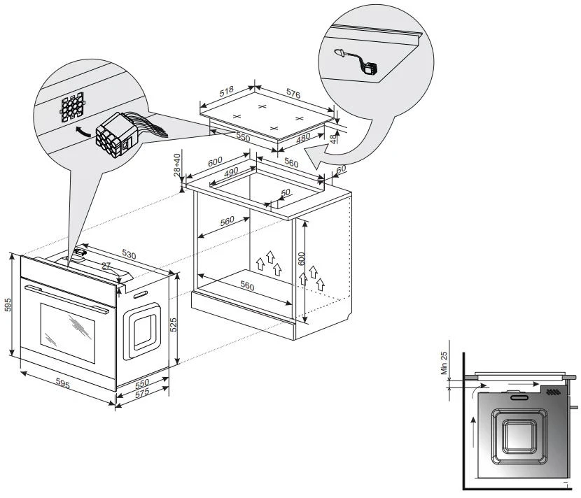 - Ширина, мм 595