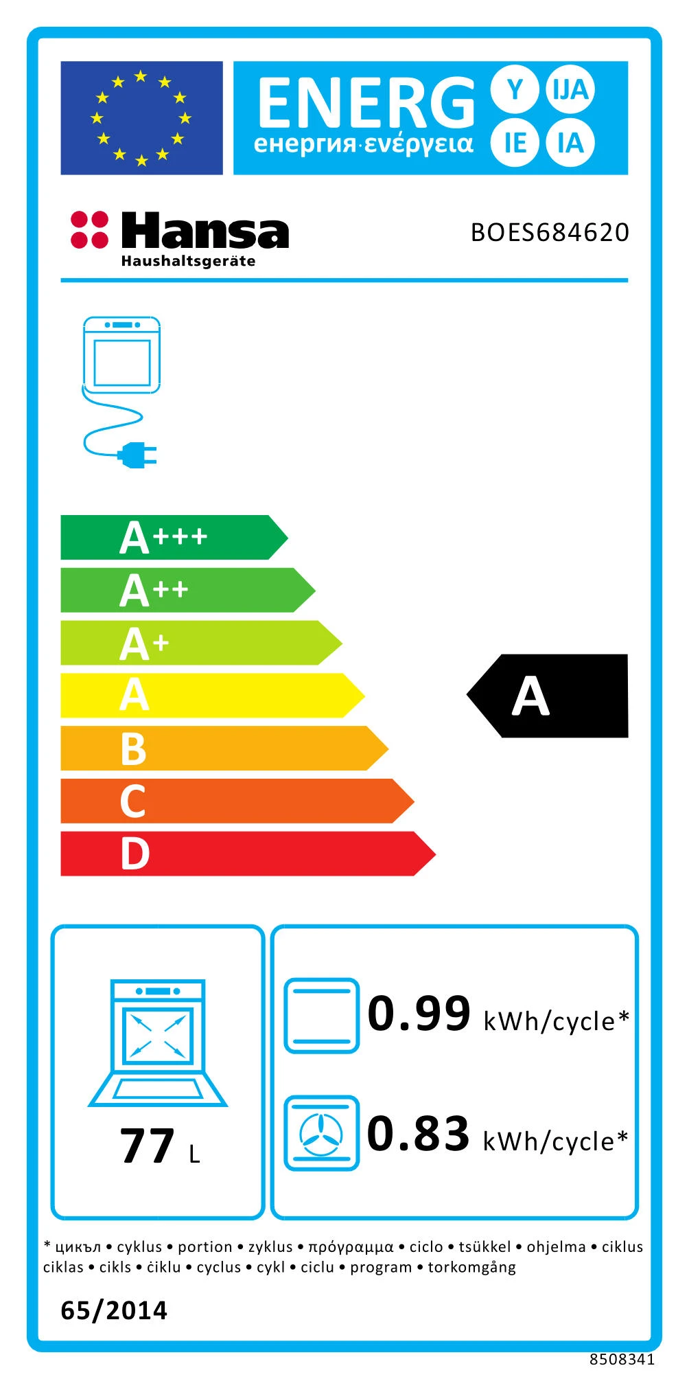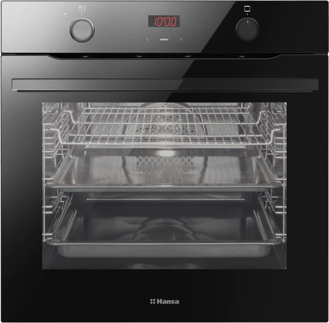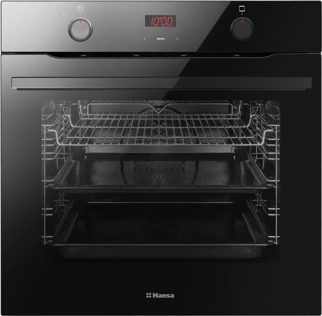 Духова шафа Hansa електрична, 60см, 77л, A, гриль, емаль легкого очищення, диспл., чорний