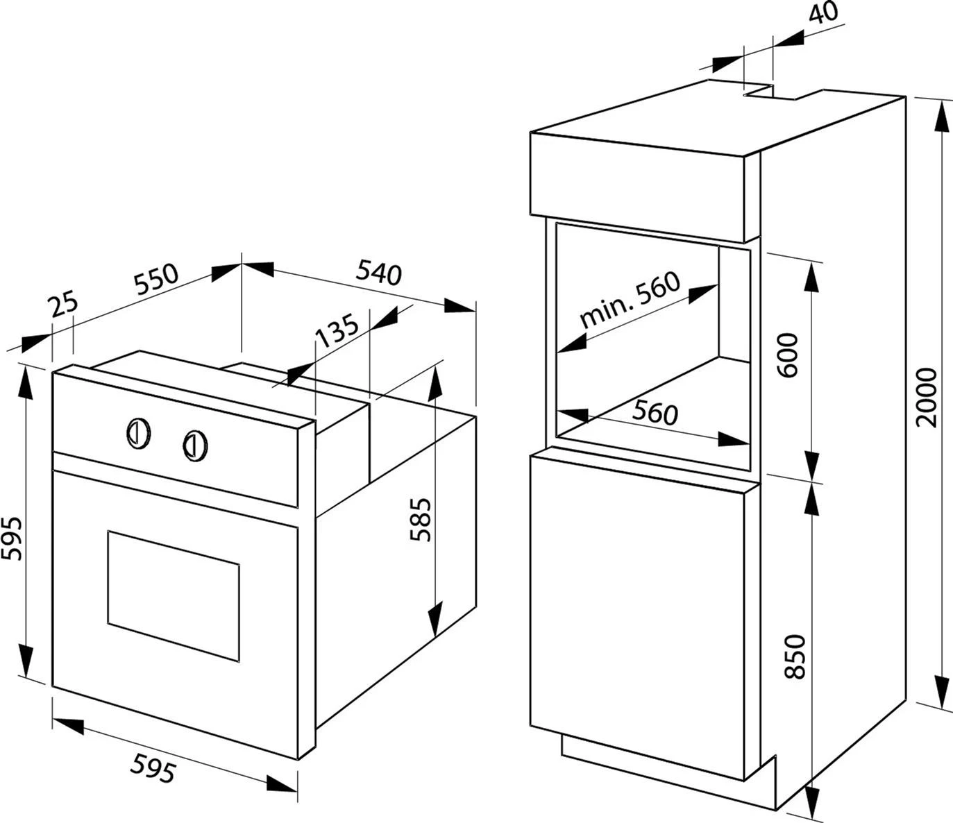 - Ширина, мм 595