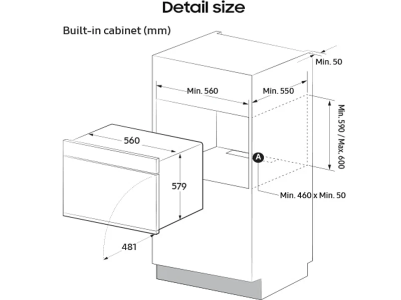- Розміри ніші для вбудовування (ВхШхГ), см 59.0-60.0 х 56.0 х 55.0 см