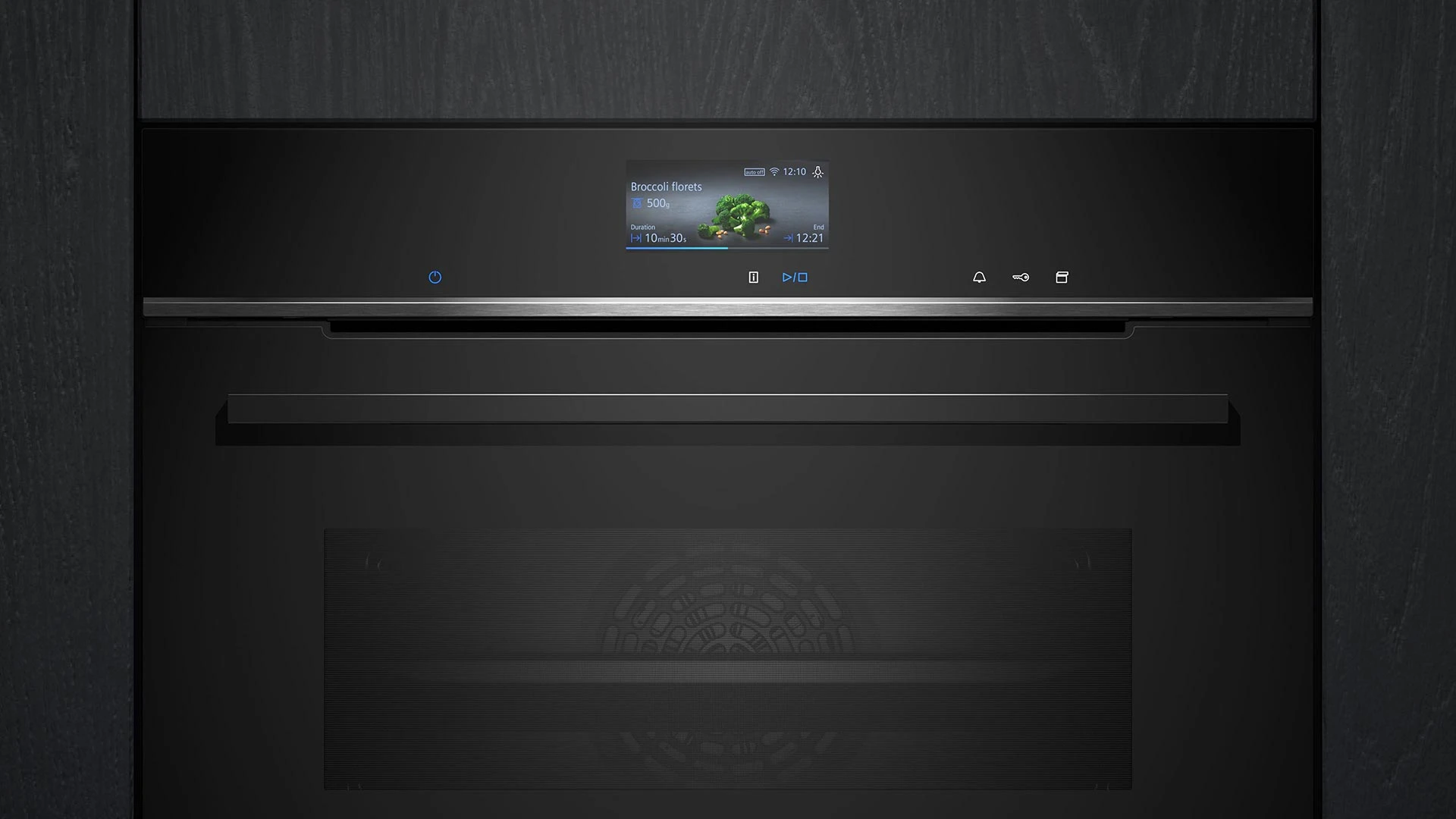 Духова шафа Siemens електрична, 71л, A+, пара, дисплей, конвекція, чорний