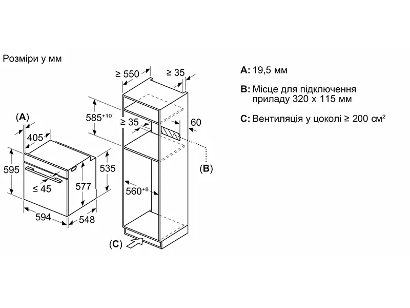 - Розміри ніші для вбудовування (ВхШхГ), см 59.5 56.8 55