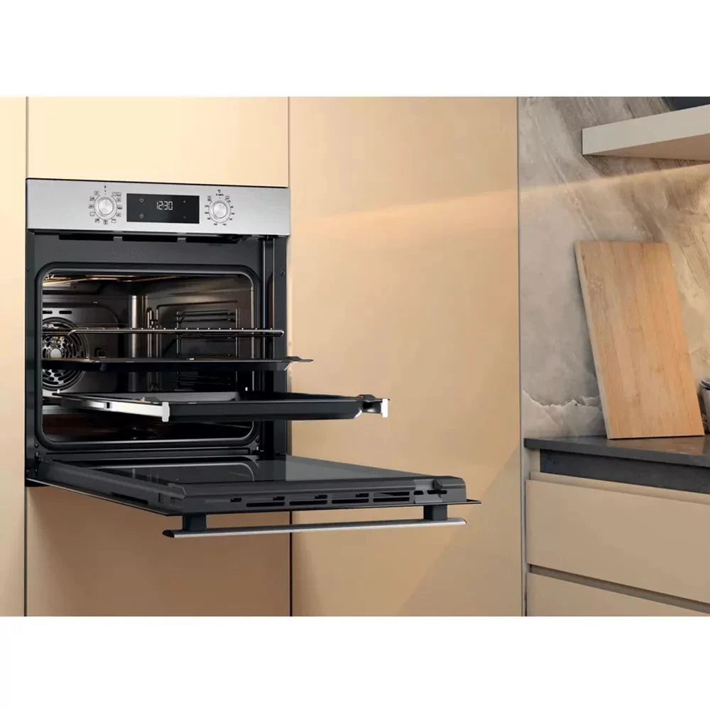 Духова шафа Whirlpool електрична, 71л, A+, дисплей, конвекція, телескопічні напрямні, нерж