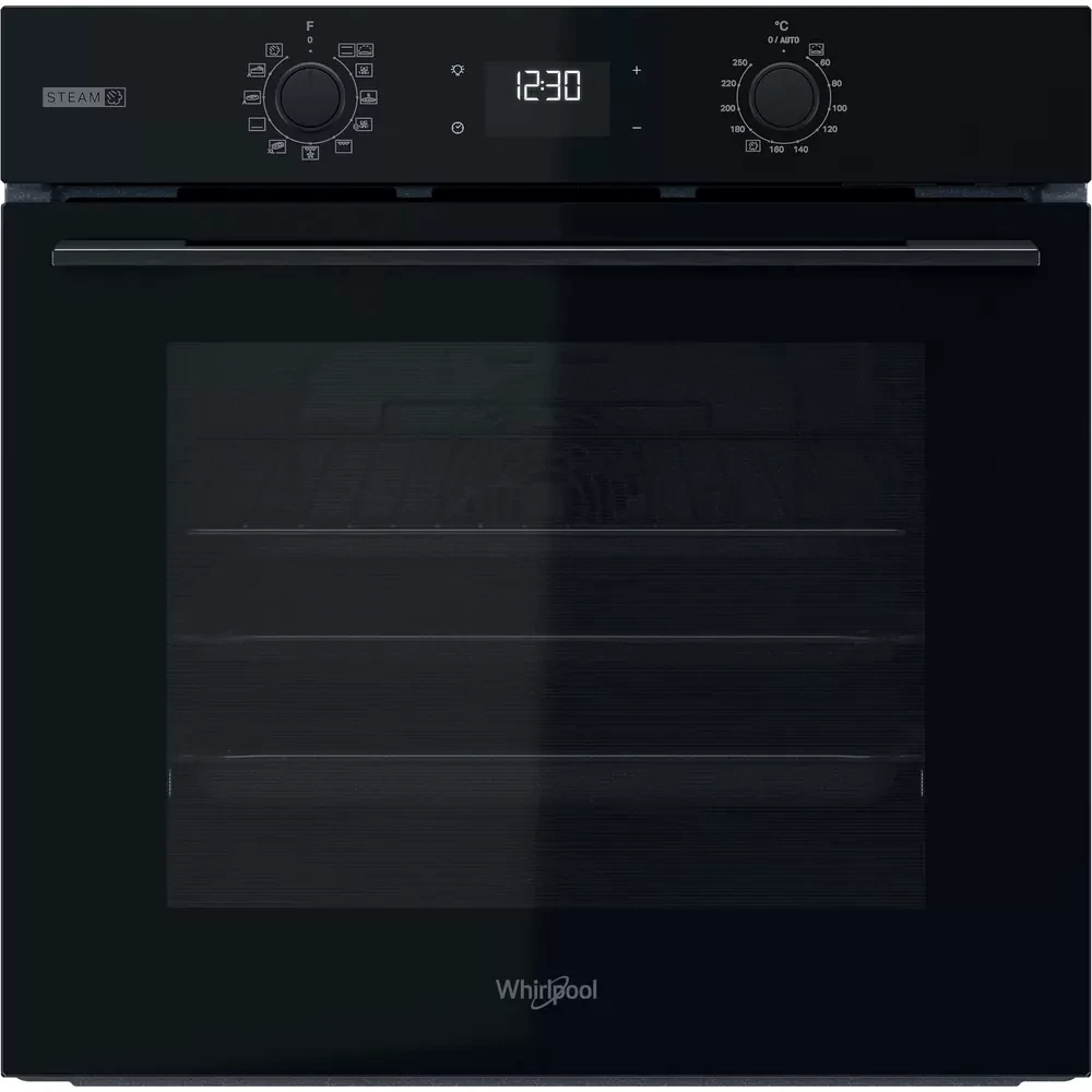 Духова шафа Whirlpool електрична, 71л, A+, дисплей, конвекція, телескопічні напрямні, пара, чорний