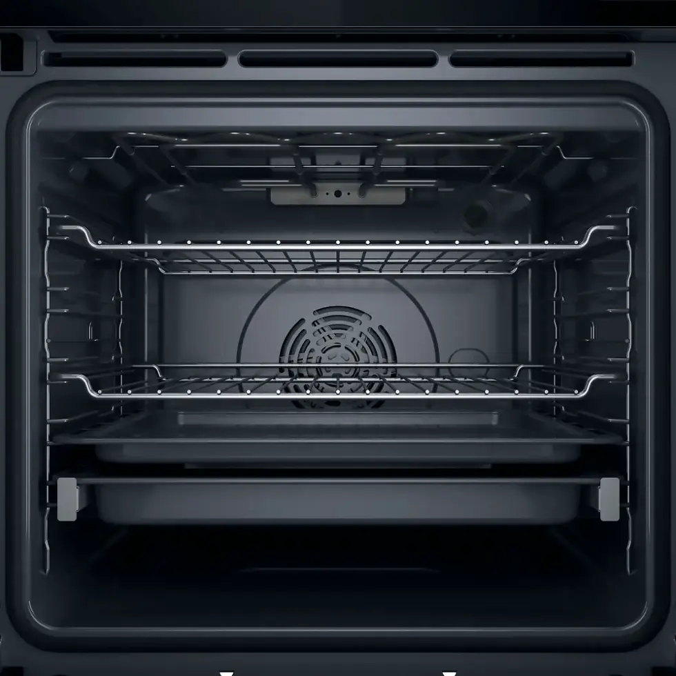 Бездоганне очищення одним натисканням кнопки. Піролітична технологія використовує високотемпературний цикл для перетворення харчових залишків на попіл, який можна легко стерти губкою. Тепловідбивні скляні панелі в дверцятах духової шафи забезпечують низьку зовнішню температуру для додаткової безпеки.