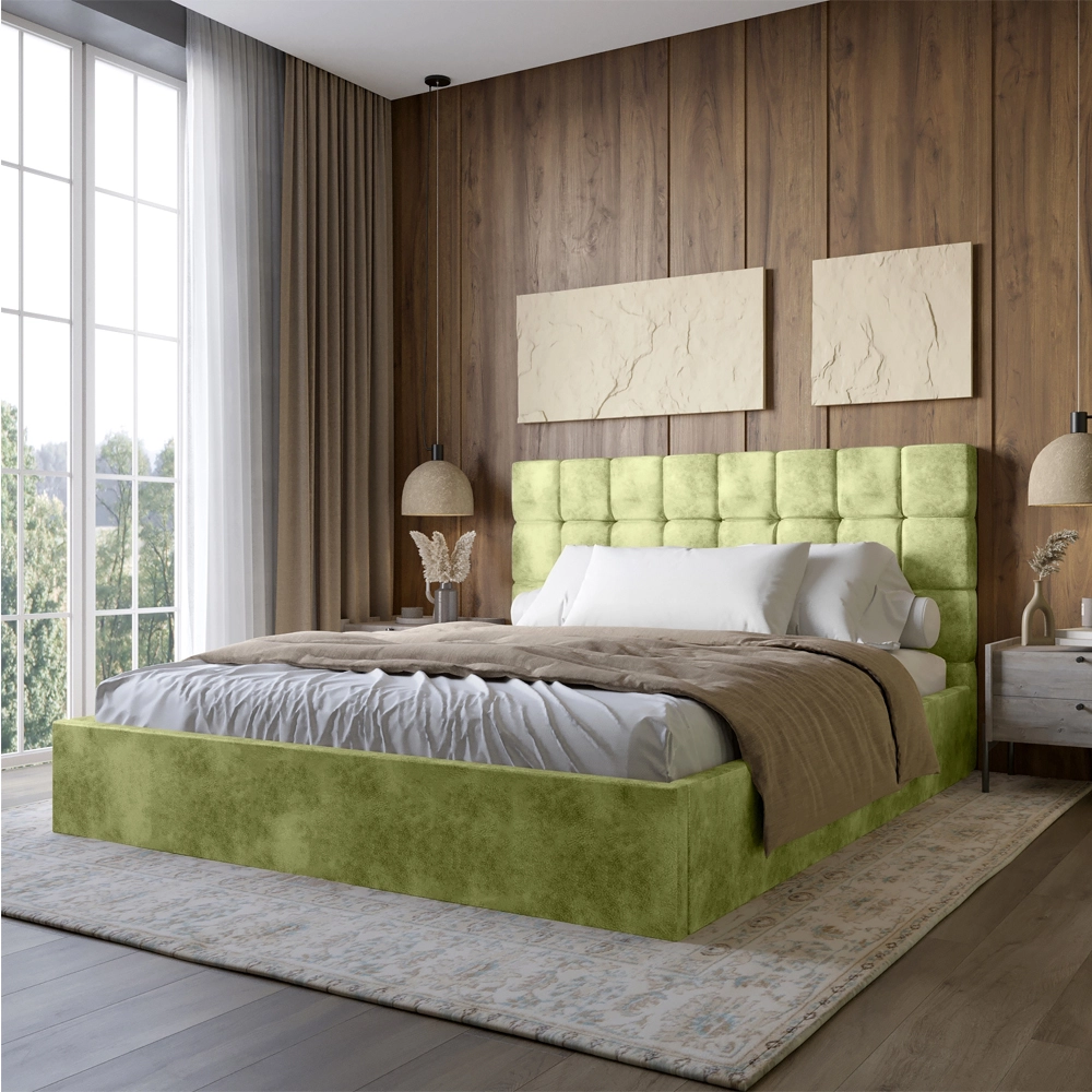 Откройте для себя настоящий комфорт с двуспальной деревянной кроватью LION Пикси Silk 201, которая станет идеальным дополнением вашей спальни. Его элегантный дизайн с мягким изголовьем создает атмосферу уюта и роскоши, а нежный цвет фисташки добавляет свежести вашему интерьеру. Эта кровать не только стильная, но и практичная, ведь подъемный механизм позволяет легко организовать пространство для хранения вещей, сохраняя вашу спальню в порядке.