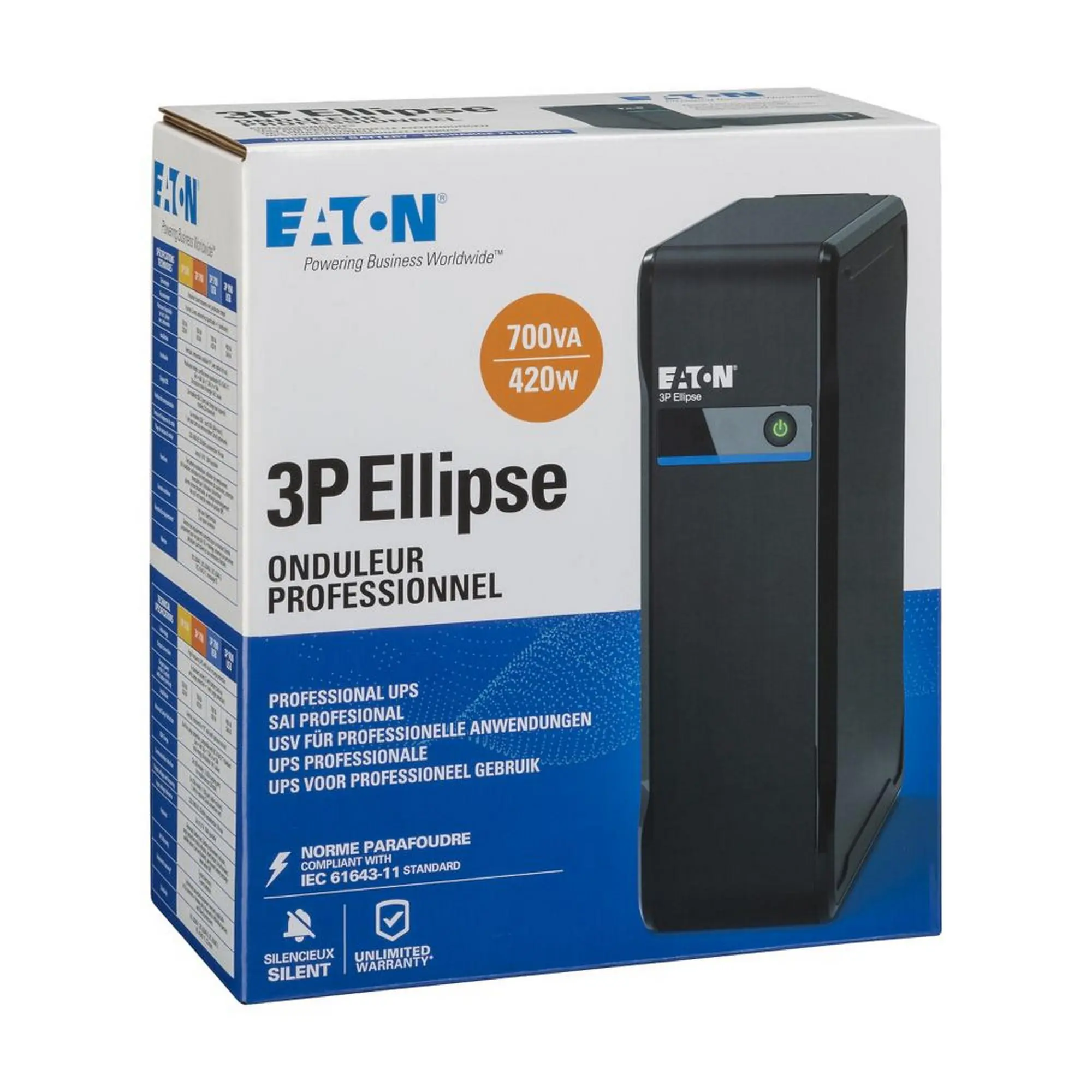 Джерело безперебійного живлення Eaton 3P Ellipse 700VA/420W, 3+1xSchuko