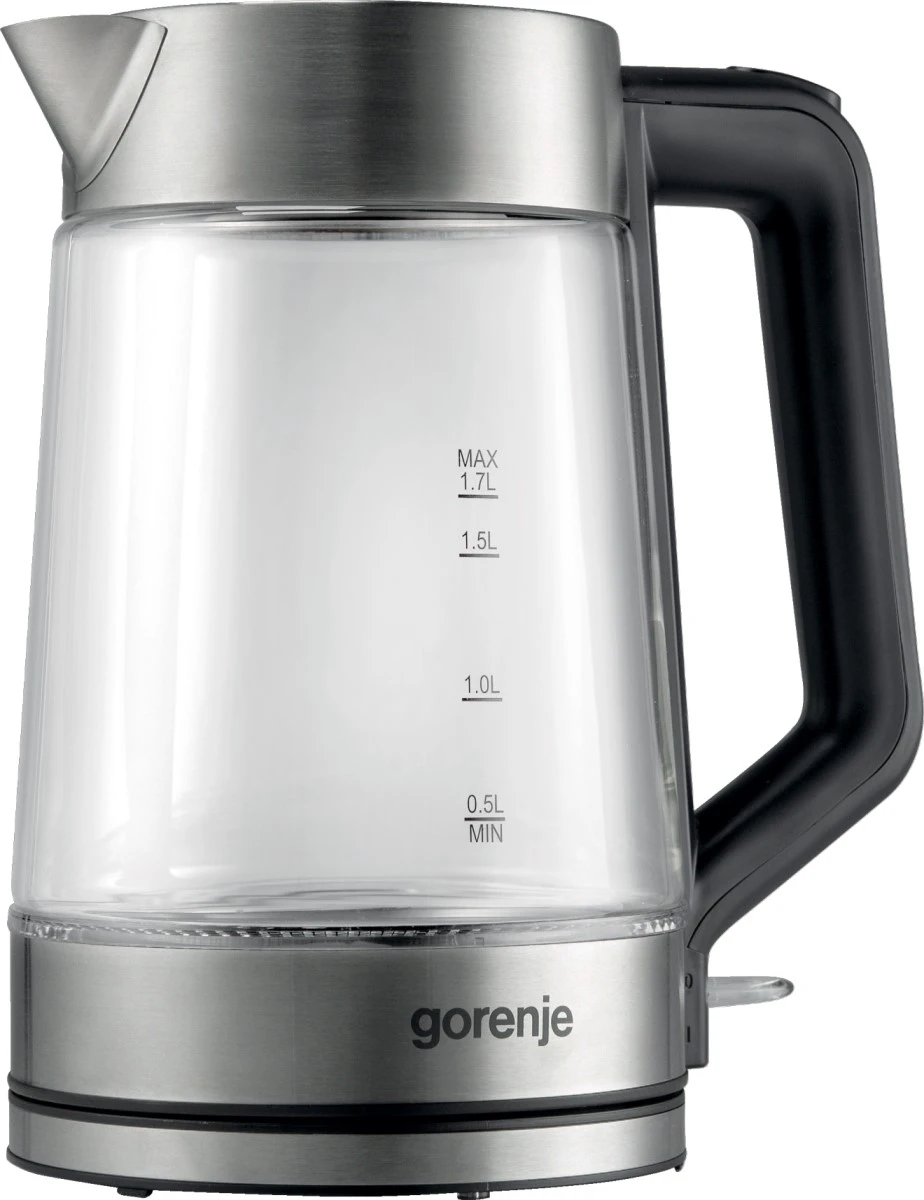 Електрочайник Gorenje 1.7л, 2,200 Вт, strix контроль, скло, нерж
