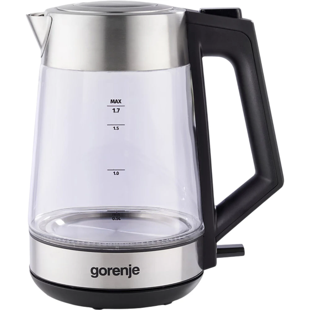 Електрочайник Gorenje 1.7л, 2,200 Вт, strix контроль, скло, нерж