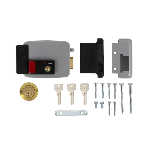 CISA 11630.50.3 – це електромеханічний накладний замок. Призначений для використання на ПРАВОСТОРОННІХ важких дверях та хвіртках з відкривання назовні. Може бути встановлений і на легких дверних полотнах. Для цього при установці слід забрати стержень червоного кольору для забезпечення м'якості закривання.