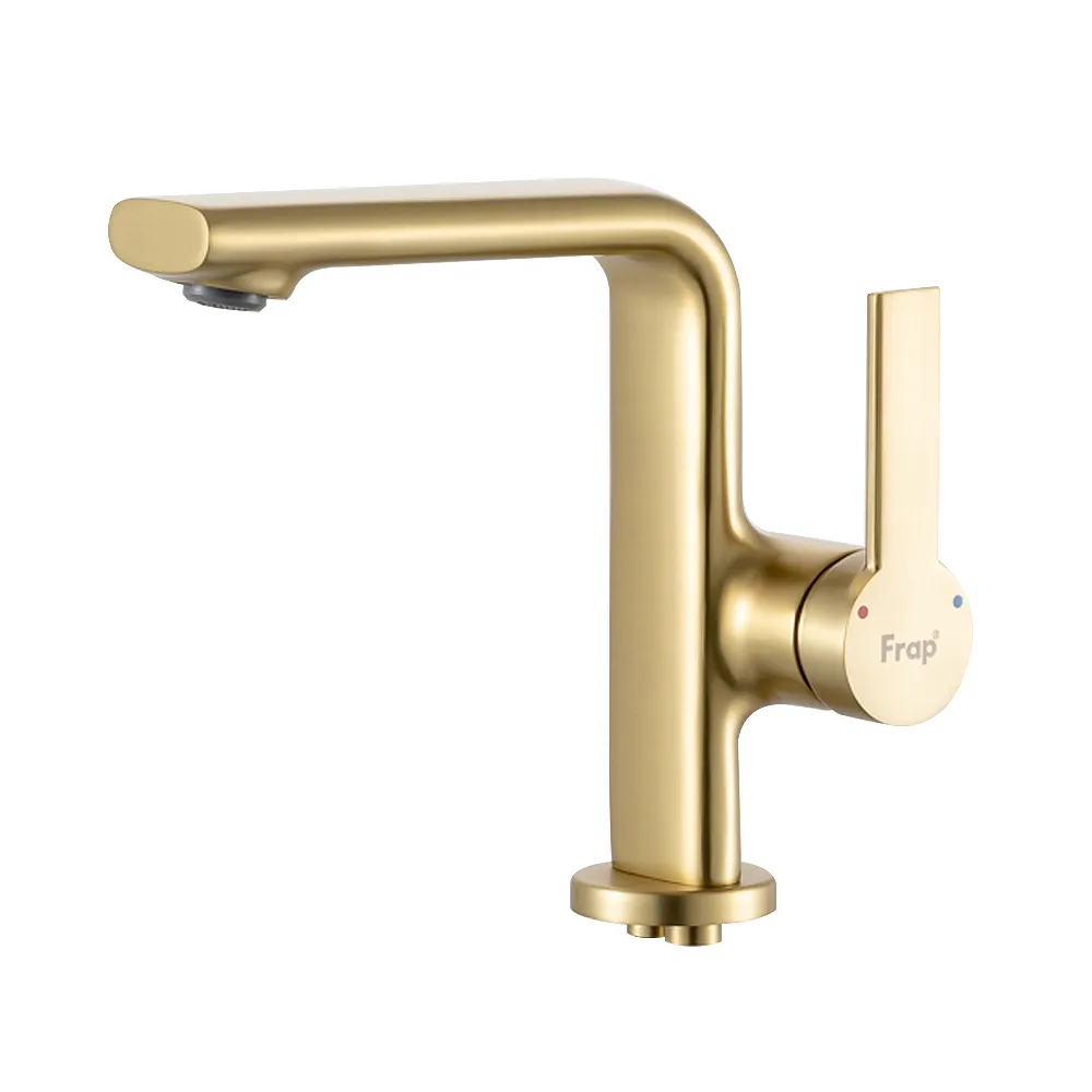 F1088-3 умивальник одноваж. литий вилив лат. корпус гайка Ø35 (сатин золотий) {10/1}