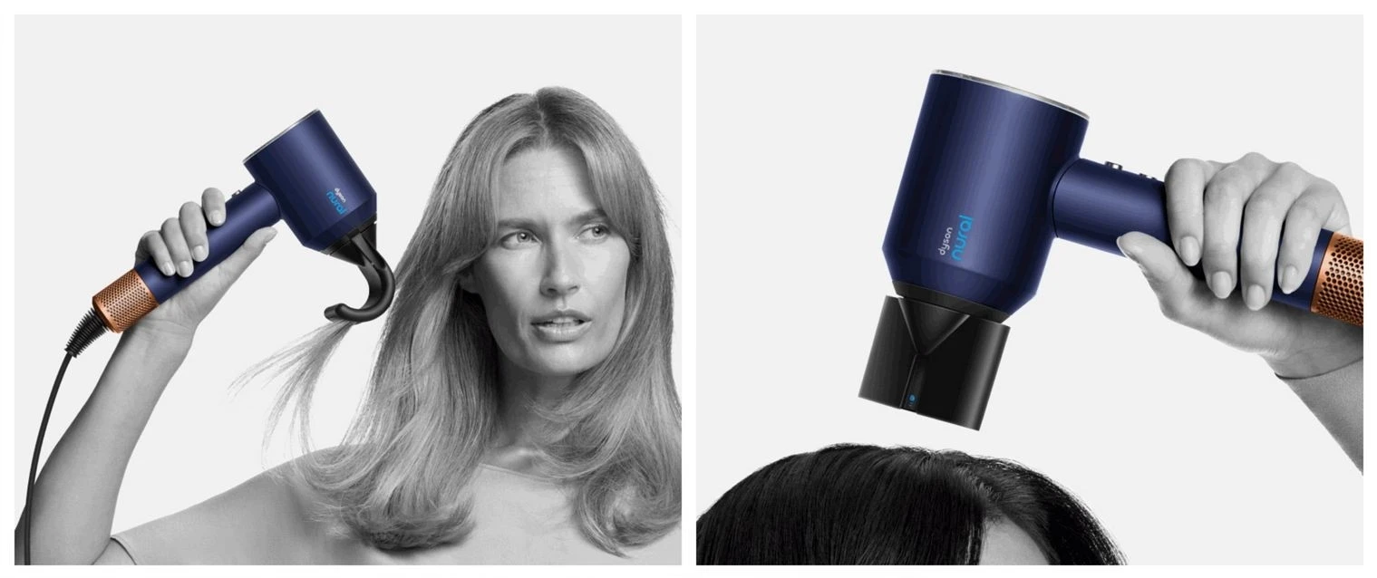 Dyson Supersonic Nural HD16 Prussian Blue/Rich Copper — інтелектуальний фен потужністю 1600 Вт з іонізацією, трьома швидкостями й чотирма точними режимами нагріву та кнопкою холодного повітря. Модель автоматично регулює температуру для збереження природного блиску та комфорту шкіри голови й оснащена п’ятьма насадками, зокрема дифузором Wave+Curl із двома режимами роботи.