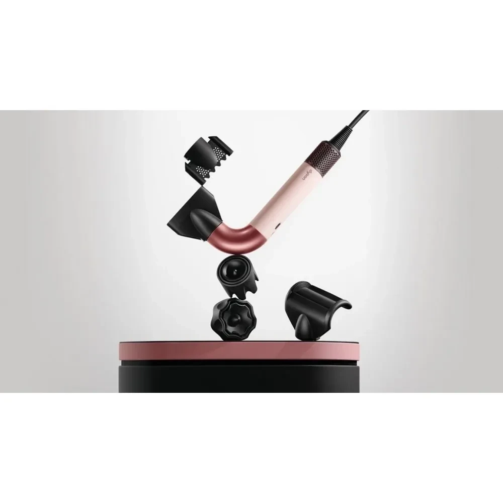 Dyson Supersonic HD17 R Jasper/Plum — професійний фен преміум-класу у вишуканому фіолетовому кольорі з п'ятьма магнітними насадками. Технологія Air Multiplier та інтелектуальний контроль температури захищають волосся від перегріву, зберігаючи природний блиск і здоров'я. Потужний потік повітря 41 л/с сушить швидко, але м'яко, а іонізація зменшує статичну електрику та пухнастість. Легкий (680 г зі шнуром), тихий (78 дБ) і зручний у використанні завдяки ергономічному дизайну та довгому 2,7-метровому шнуру.