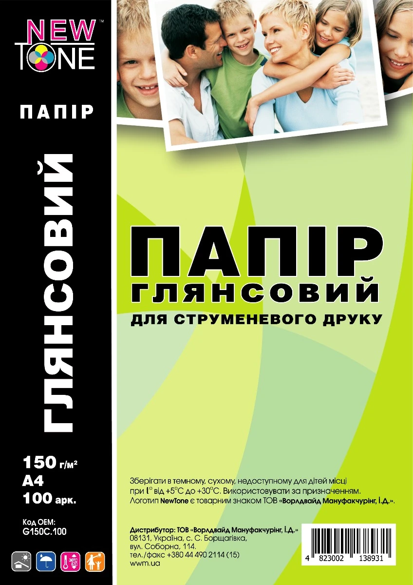 Фотопапір NEWTONE глянсовий 150г/м кв, A4, 100л (G150C.100)