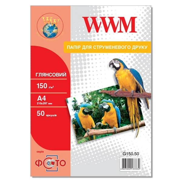 Фотопапір WWM глянсовий 150г/м кв, A4, 50л (G150.50)