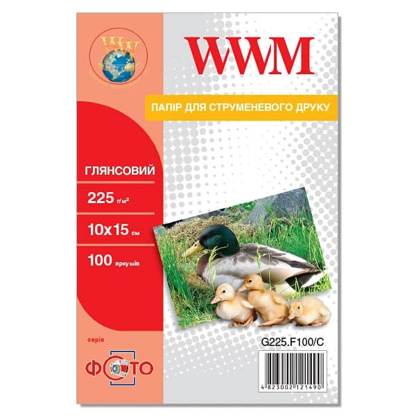 Фотопапір WWM глянсовий 225г/м кв, 10см x 15см, 100л (G225.F100/C)