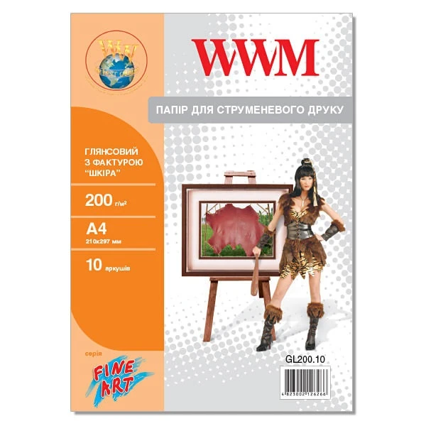 Фотопапір WWM Глянсовий "Шкіра" 200Г/м кв, A4, 10л (GL200.10)