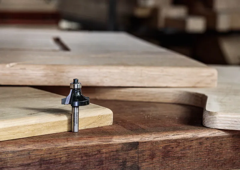 Твердосплавна карнизна фреза з хвостовиком 8 мм, діаметром 3 мм, робочою довжиною 10,2 мм і загальною 53 мм, з двома лезами і шарикопідшипником — робоча насадка до вертикально-фрезерних машин. Практична для заокруглення кромок заготовок з деревини, наприклад, дуба, вільхи, бука, ялини.