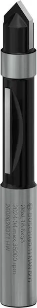 Робоча насадка для вертикального фрезера — копіювальна фреза призначена для вирізання різних отворів у деревині, деревних матеріалах, у тому числі й із покриттям. Зокрема, стане в нагоді при установці виставкового обладнання, виготовлення ящиків, збірці будинків з готових дерев'яних елементів, під час вирізання в стінах з дерев'яних панелей отворів під вимикачі, розетки, світлових прорізів. Копіювальна фреза з хвостовиком 8 мм, діаметром 8 мм, загальною довжиною 66 мм, робочою — 19 мм. Фреза світлового перетину з ріжучими кромками з твердосплавними вставками. Для плавного ведення насадки в заготівлі між головною різальною кромкою та іншими у фрези є хвостовик.