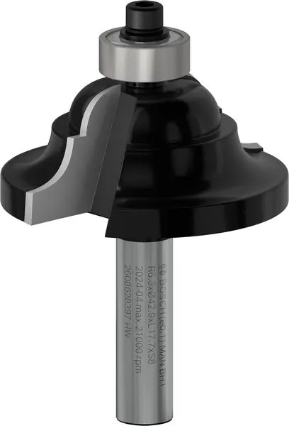 Профільна фреза D з хвостовиком 8 мм, шириною 15 мм, робочою довжиною 18 мм та загальною 60 мм, з радіусом 6,3 мм — практична робоча насадка для вертикального фрезера при виконанні столярних робіт. Виготовлена з твердого сплаву, з двома лезами та шарикопідшипником, фреза оптимально підходить для обробки кромок деталей, виготовлення різних обкантовок.
