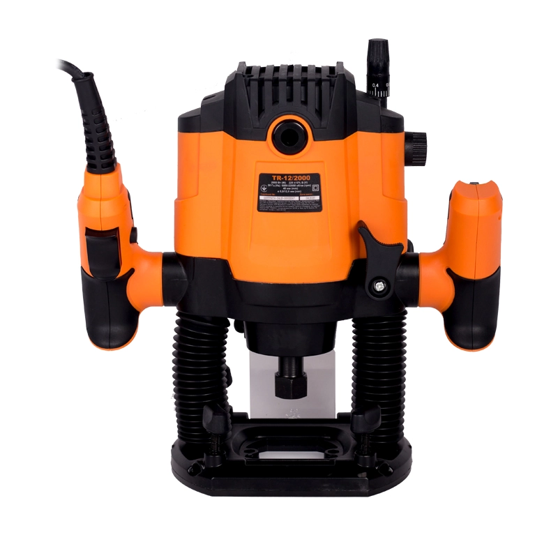 Вертикальна фрезерна машина TR-12/2000 представляє собою ручний настільний електроінструмент для механічної обробки деревини, пластику та деревовмісних композитів при формування профілів, отворів, пазів, узорів, орнаментів, написів на панелях для меблів, плінтусах тощо. Робота виробу побудована на технології різання матеріалу за допомогою кінцевих фрез, які обертаються з високою швидкістю. Фреза фіксується та самоцентрується по циліндричній поверхні хвостовика при затягуванні патрону гайковим ключем з комплекту.
