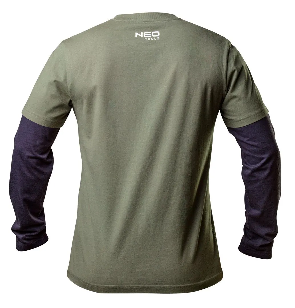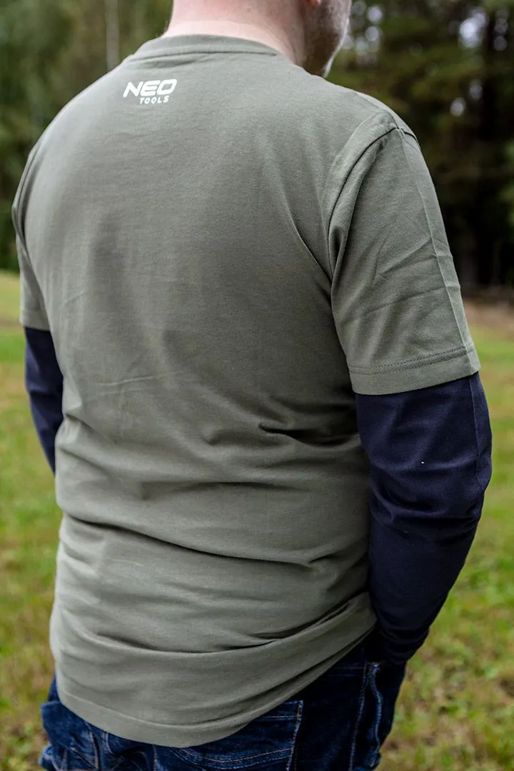 Робоча футболка NEO із серії CAMO оливково-зеленого кольору, високоякісний бавовняний трикотаж. Виріб вирізняється подвійним рукавом контрастного кольору. Урбаністичний крій дозволяє використовувати виріб і поза роботою. Якість гарантується європейським сертифікатом та виготовленням відповідно до EN ISO 13688:2013. Бренд NEO відповідає очікуванням професіоналів.