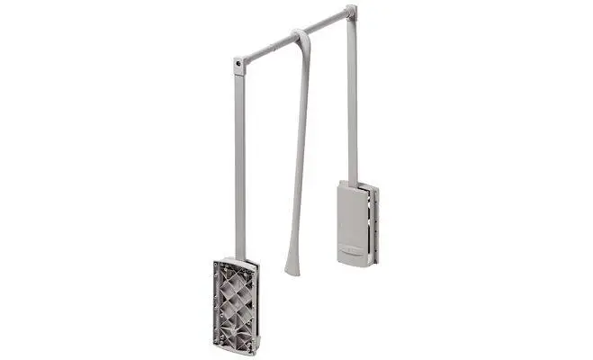 Гардеробний ліфт для монтажу на боковій стінці гвинтами, максимальне навантаження до 10 кг. Виготовлений зі сталі та пластмаси, наявні з такими варіантами покриття та кольорів: нікельована, чорна, колір алюмінію. Кріплення входить в об'єм поставки. Довжина ширини корпусу 600 - 1000 мм.
