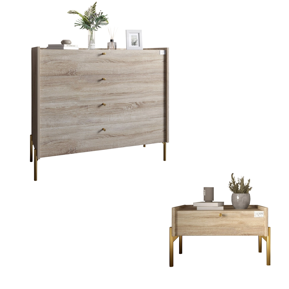 Гарнитур у спальню комод та приліжкова тумба на 1 шухляду LION Wood Дуб Сонома (LION-041529)