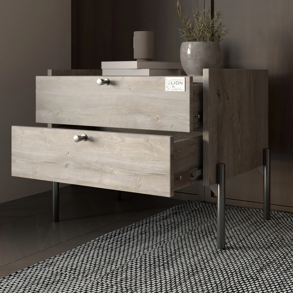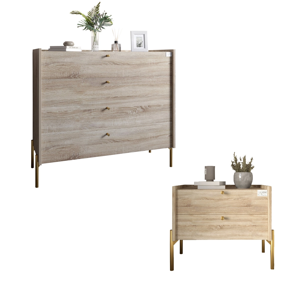Гарнитур у спальню комод та приліжкова тумба на 2 шухляди LION Wood Дуб Сонома (LION-041528)