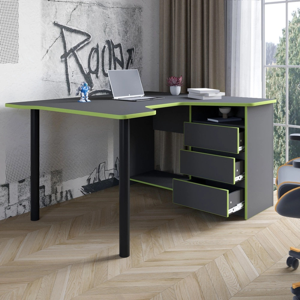 Почувствуйте настоящий комфорт во время игры с геймерским компьютерным столом LION Буст. Этот угловой стол сочетает стильный дизайн и функциональность, что делает его идеальным выбором для каждого геймера. Благодаря своему современному виду в цветах темного бетона и красного, он станет ярким акцентом в вашей игровой зоне. Благодаря продуманной конструкции стол обеспечивает удобный доступ ко всем элементам вашей игровой системы. Пространство для монитора, клавиатуры и мыши позволяет сосредоточиться на игре без лишних отвлечений. А встроенные ящики помогут хранить ваши аксессуары в порядке, чтобы вы всегда были готовы к новым вызовам.