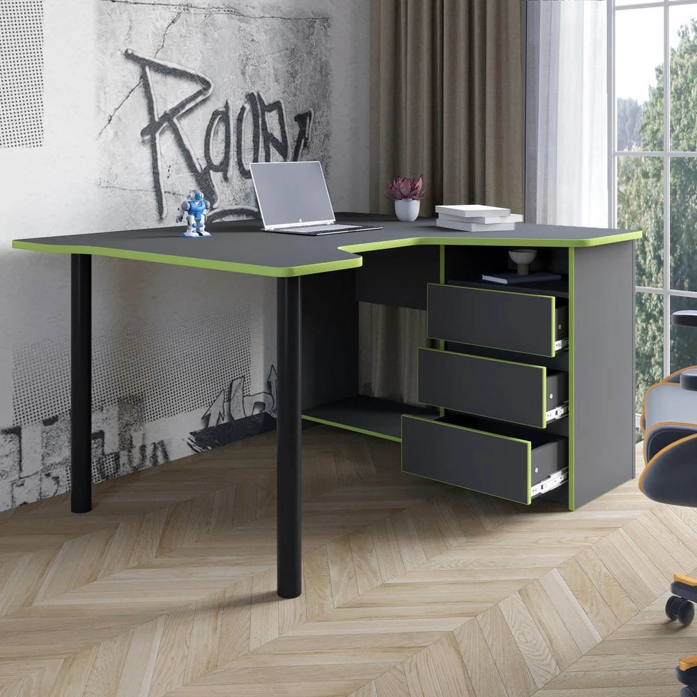 Откройте новый уровень комфорта и производительности с геймерским компьютерным столом LION Буст. Этот стильный угловой стол обеспечивает максимальную площадь для вашего оборудования, позволяя без труда организовать рабочее пространство. Благодаря своему современному дизайну он легко впишется в любой интерьер, придавая вашей комнате элегантный вид.