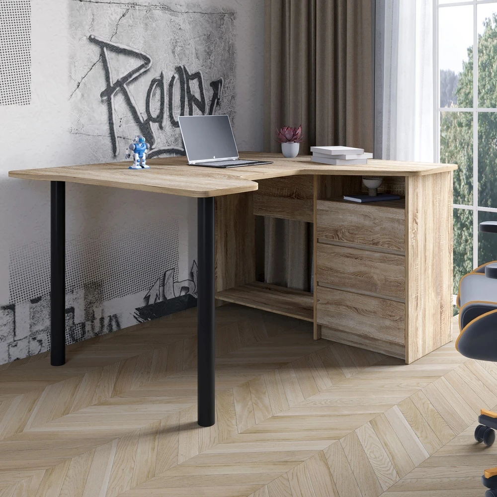 Геймерський комп'ютерний стіл LION Буст кутовий з шухлядами Дуб сонома трюфель (LION-041457)