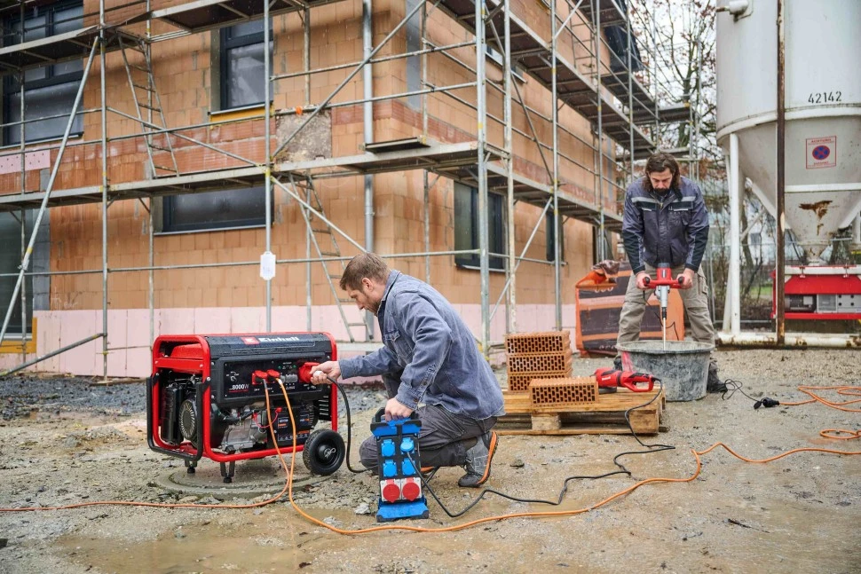 Генератор Einhell TC-PG 8000 видає номінальну потужність 3200 Вт на 230 В та 3600 Вт на 400 В у трифазному режимі. Оснащений 4-тактним двигуном об’ємом 459 см³ з електростартером і акумулятором 12 В. Бак на 25 л забезпечує тривалу роботу без дозаправки. Функція AVR стабілізує вихідну напругу. Два великі колеса та складана ручка спрощують транспортування.