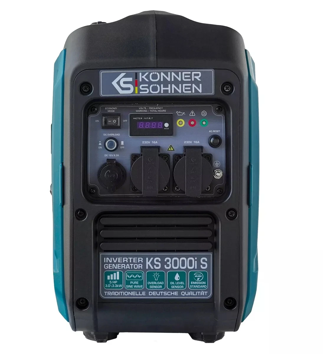 Інверторний генератор Konner & Sohnen KS 3000i S — компактне та надійне джерело електроенергії для дому, дачі або подорожей. Завдяки потужності 3.3 кВт і чистій синусоїді забезпечує стабільну роботу чутливої техніки. Ручний стартер та економний 4-тактний двигун гарантують легкий запуск і тривалий час роботи. Ергономічний корпус із низьким рівнем шуму дозволяє використовувати пристрій навіть у житлових умовах.