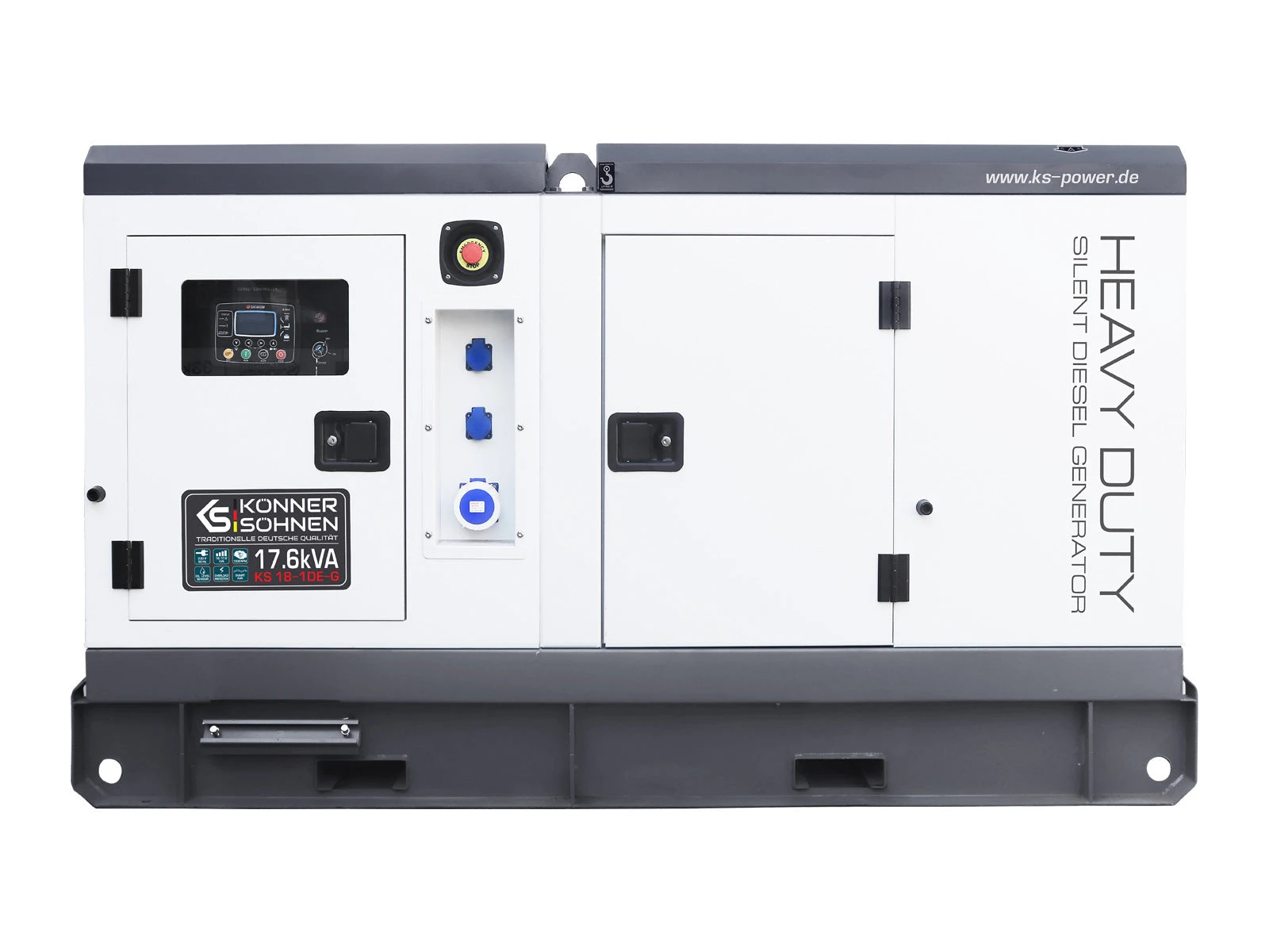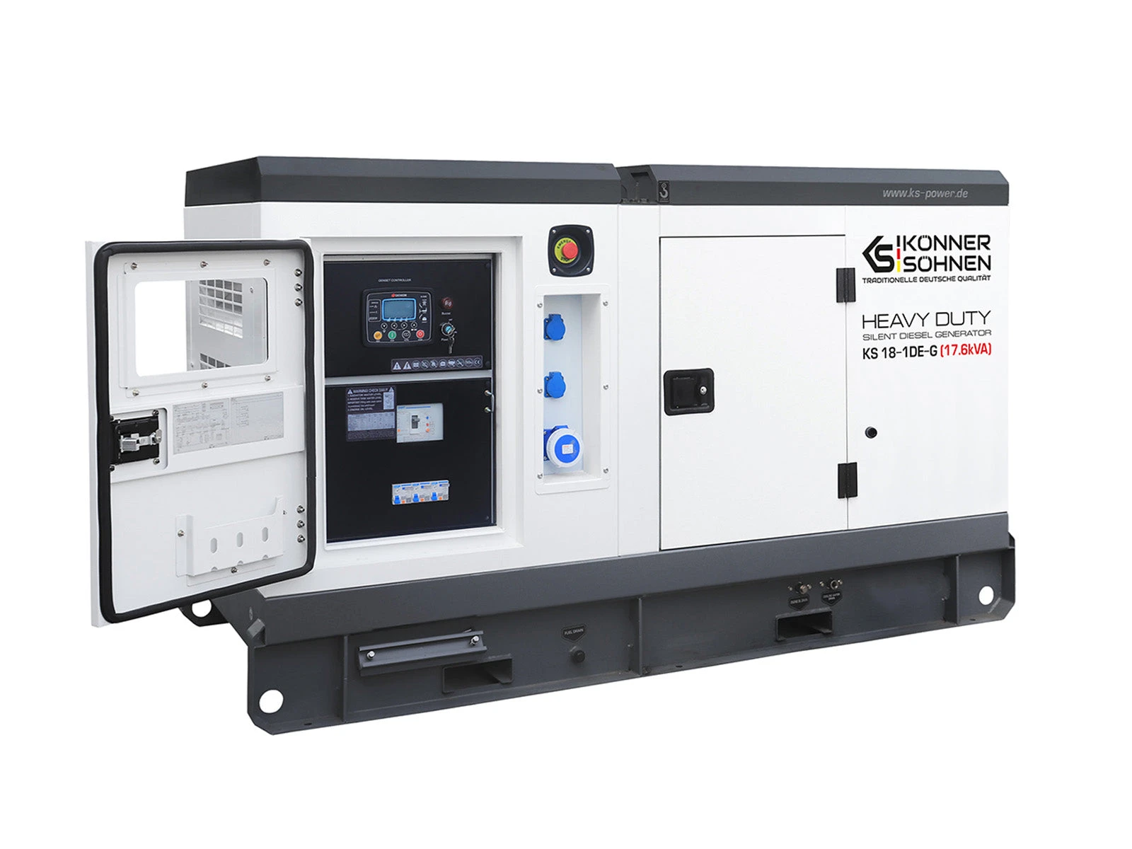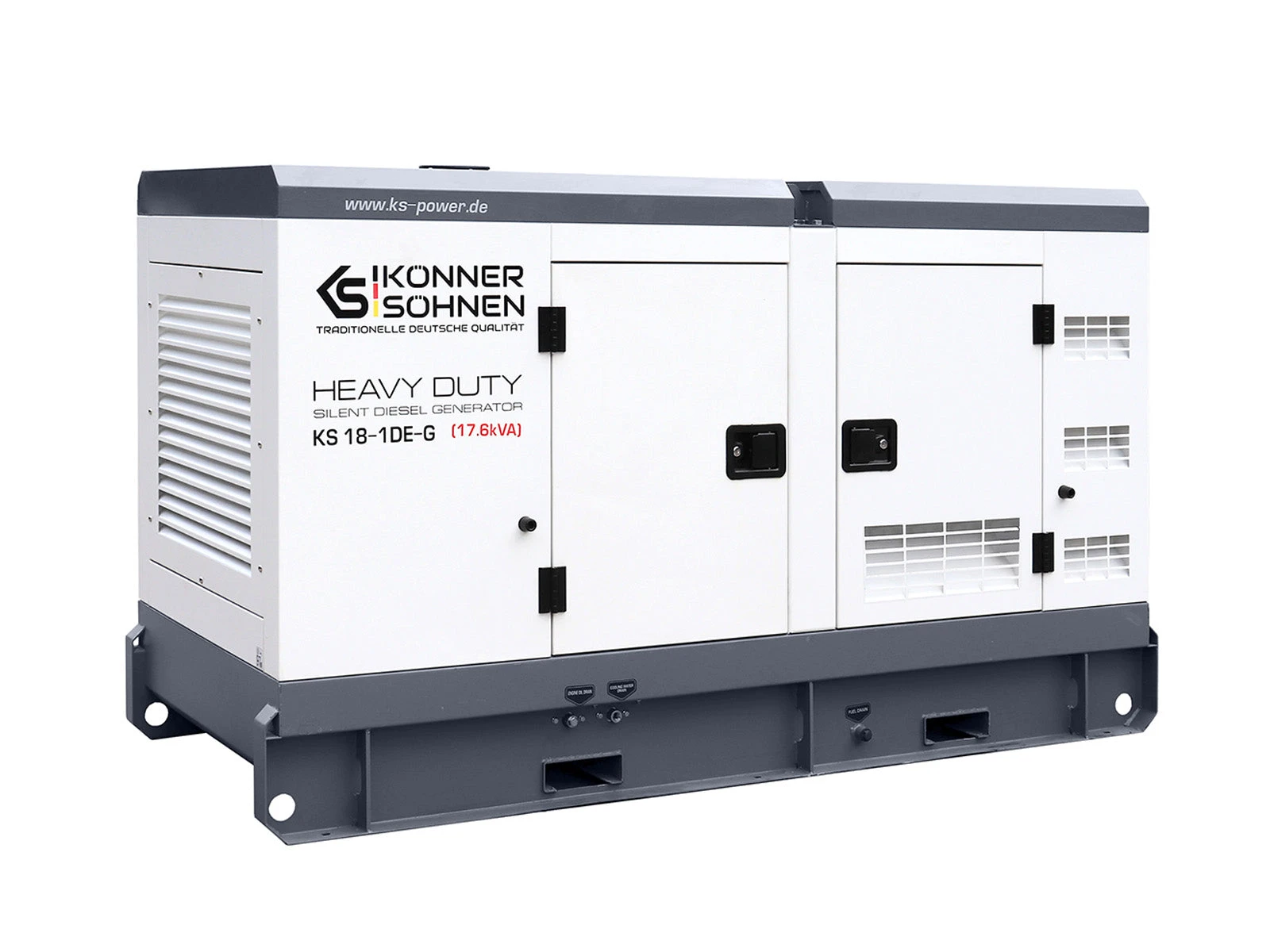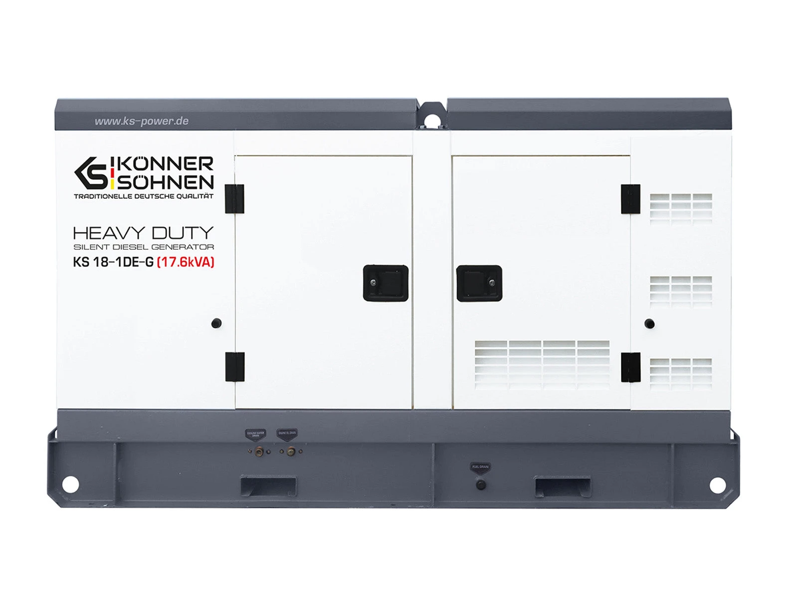 Дизельний генератор Konner&Sohnen KS 18-1DE-G видає номінальну потужність 16 кВА при напрузі 230 В з електростартером. Агрегат оснащений двигуном Deutz з водяним охолодженням і шумозахисним антивандальним корпусом з гальванічним покриттям. Передстартовий підігрів і вихід ATS забезпечують надійний запуск у холод та автоматичне перемикання живлення.