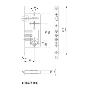 - Габарити лицьової частини замка 22х240 мм