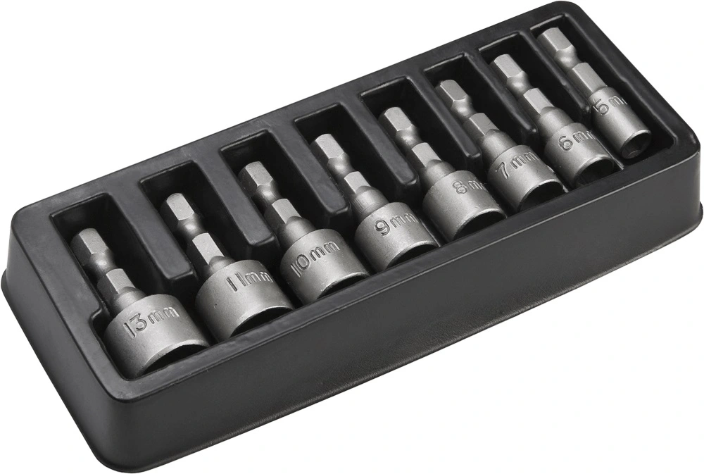 Наконечники викруткові TOPEX, розмір гнізда 1/4". В наборі міститься 8 шестигранних насадок розмірів 5-13 мм. Всі елементи виготовлені з міцної хромванадієвої сталі, що забезпечує подовжений ресурс продукту. Марка TOPEX адресована майстрам, які займаються дрібним ремонтом.