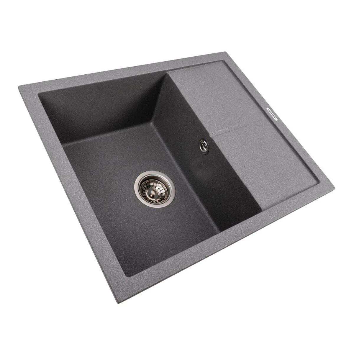 Гранітна кухонна мийка Valeso 5850 REYNA матова з сушкою, сірий мусон