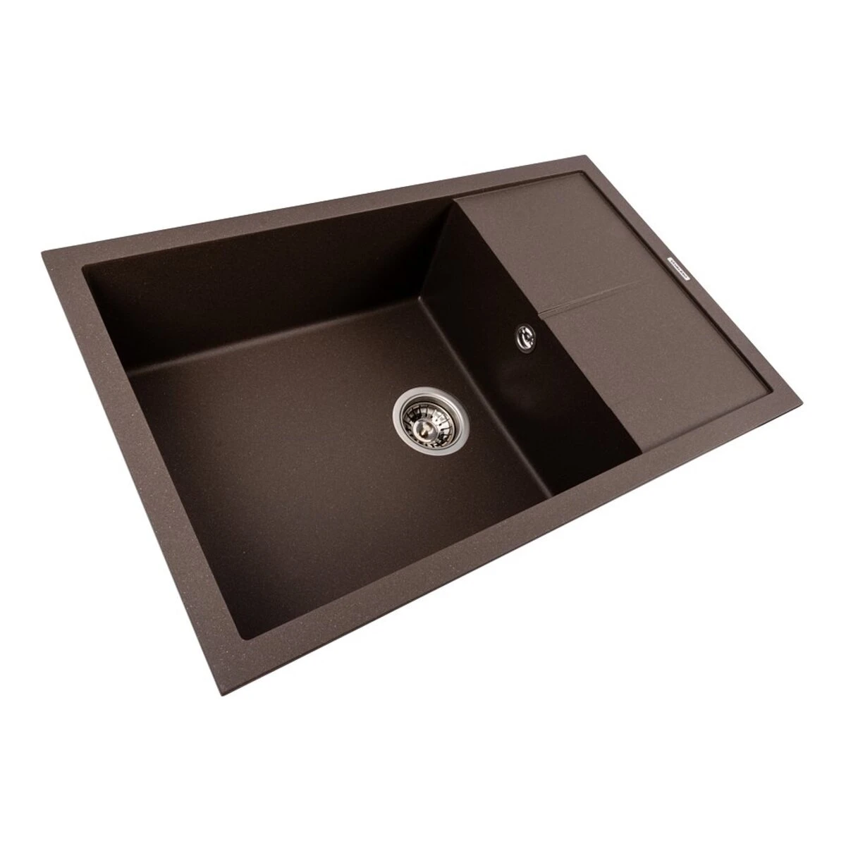 Мийка виготовлена з штучного каменю, що гарантує її не лише привабливий зовнішній вигляд, але й неперевершену стійкість до щоденних навантажень. Велика функціональна чаша (490×440 мм) та інтегрована сушка (робоча поверхня) забезпечують максимальну зручність та ефективне використання робочого простору.
