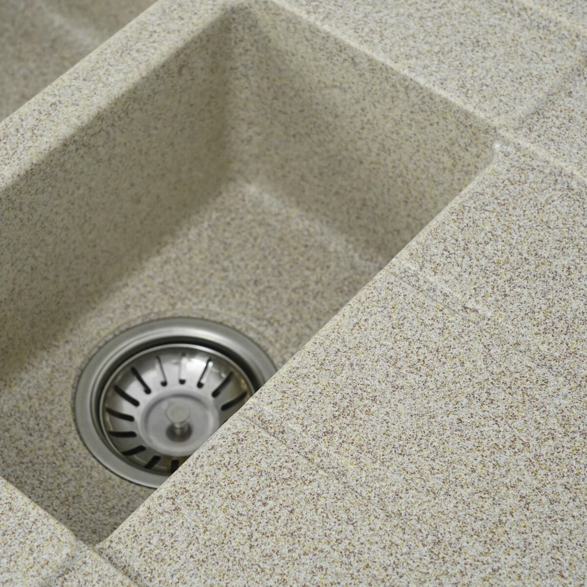 Мийка на 80% складається з кварцу та на 20% з надзвичайно твердої акрилової смоли, завдяки чому невибаглива у догляді, а також має великий запас міцності.
