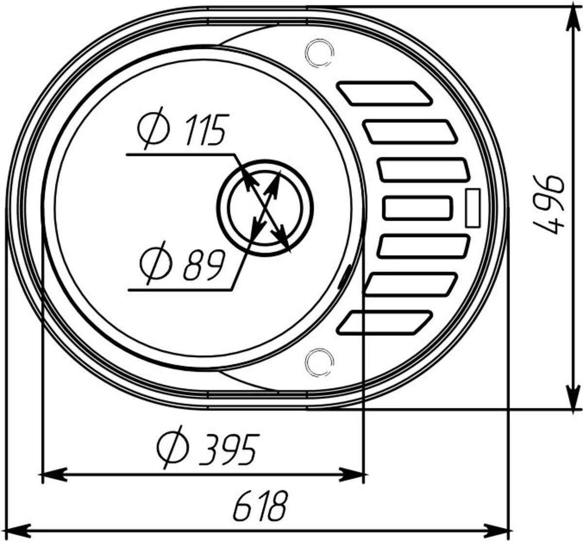 Розміри мийки – 618х496х220 мм, вага – 7,5 кг, сифон – євросифон з широкою горловиною, 110 мм.