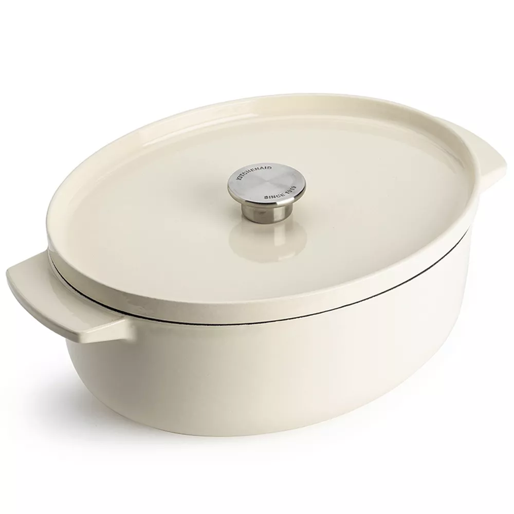 Гусятниця чавунна з кришкою KitchenAid, 30 см, 5,6 л, колір мигдальний крем (CC006062-001)
