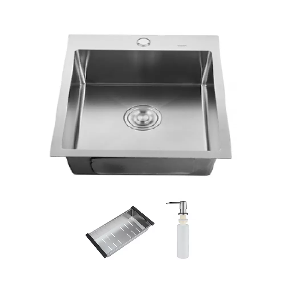ID 5050 мийка одинар.500x500x215мм, (3.0/0.8мм),SUS 304 сифон, дозатор, кошик, Satin {1/1}