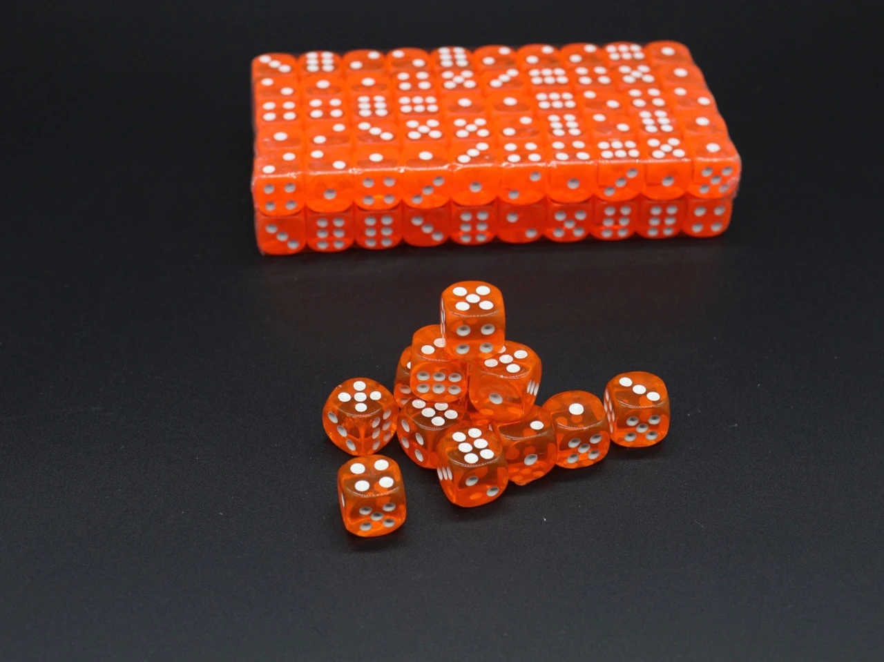 Гральні кубики кістки пластикові, 14 мм, Колір "помаранчевий"
