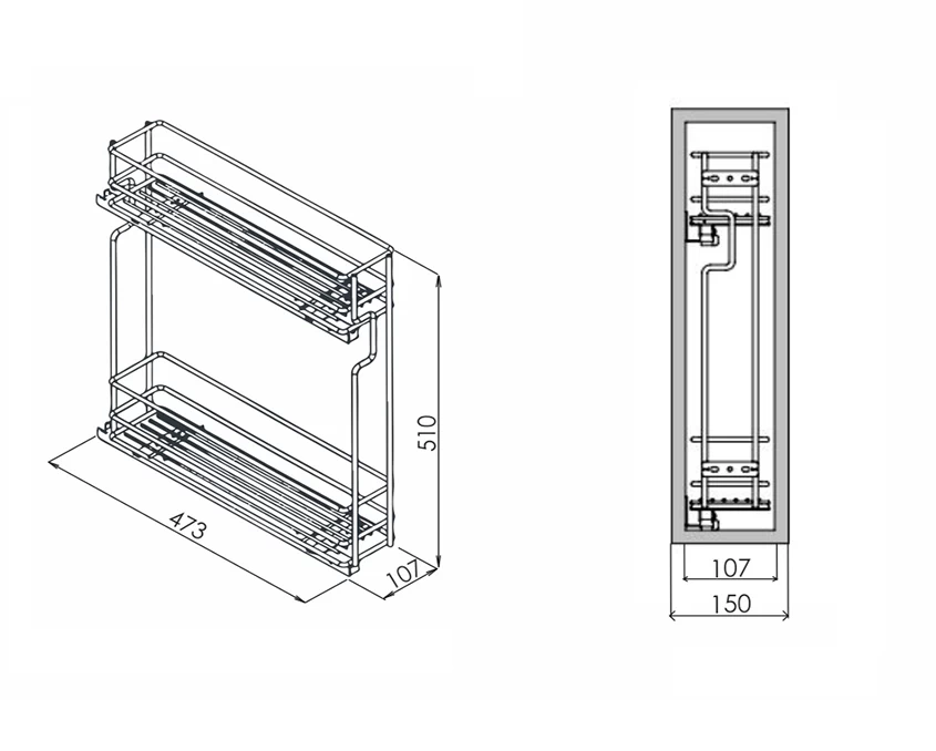 Карго Vibo дворівневе ліве з прихованими напрямними 150 мм ELQHM152SXSC Хром