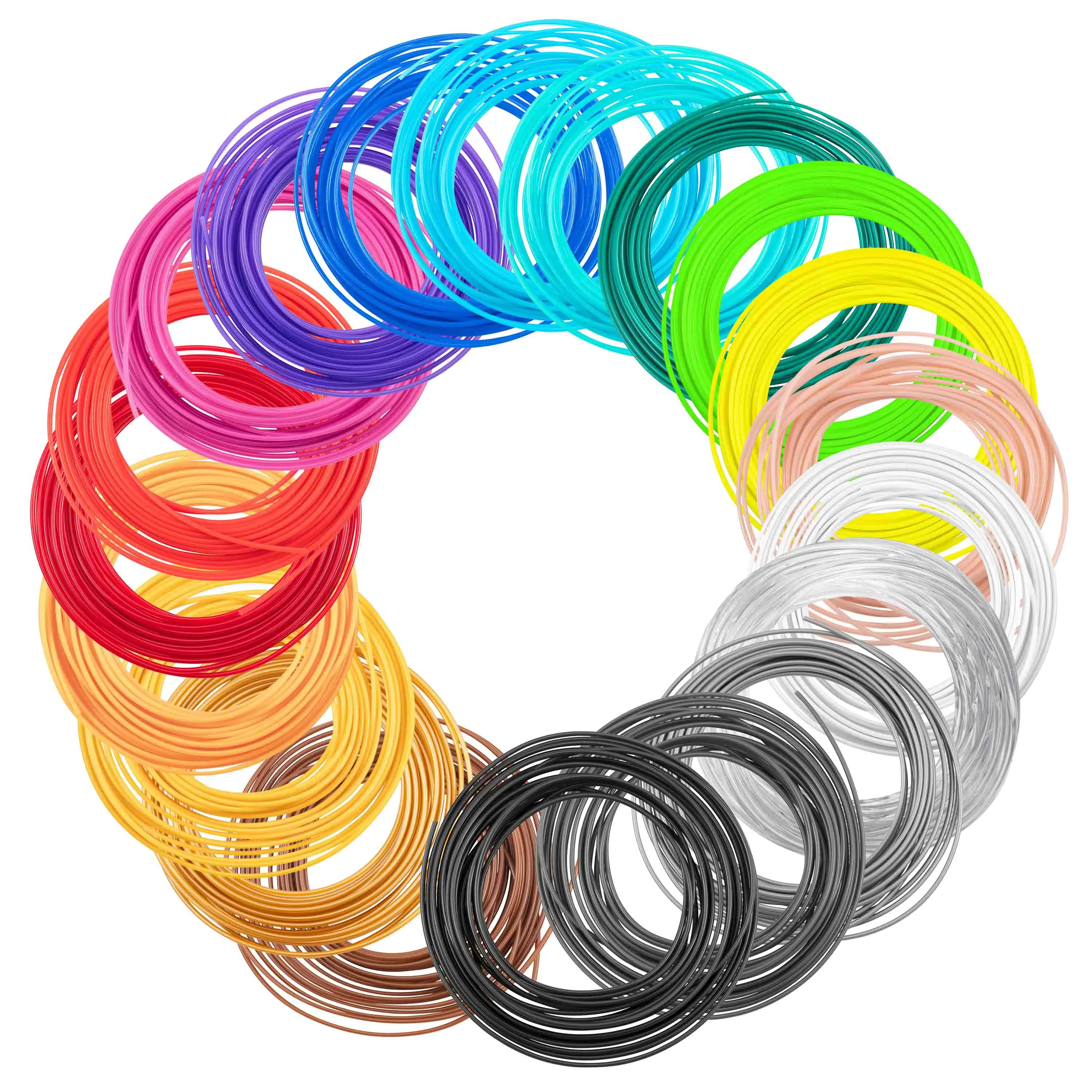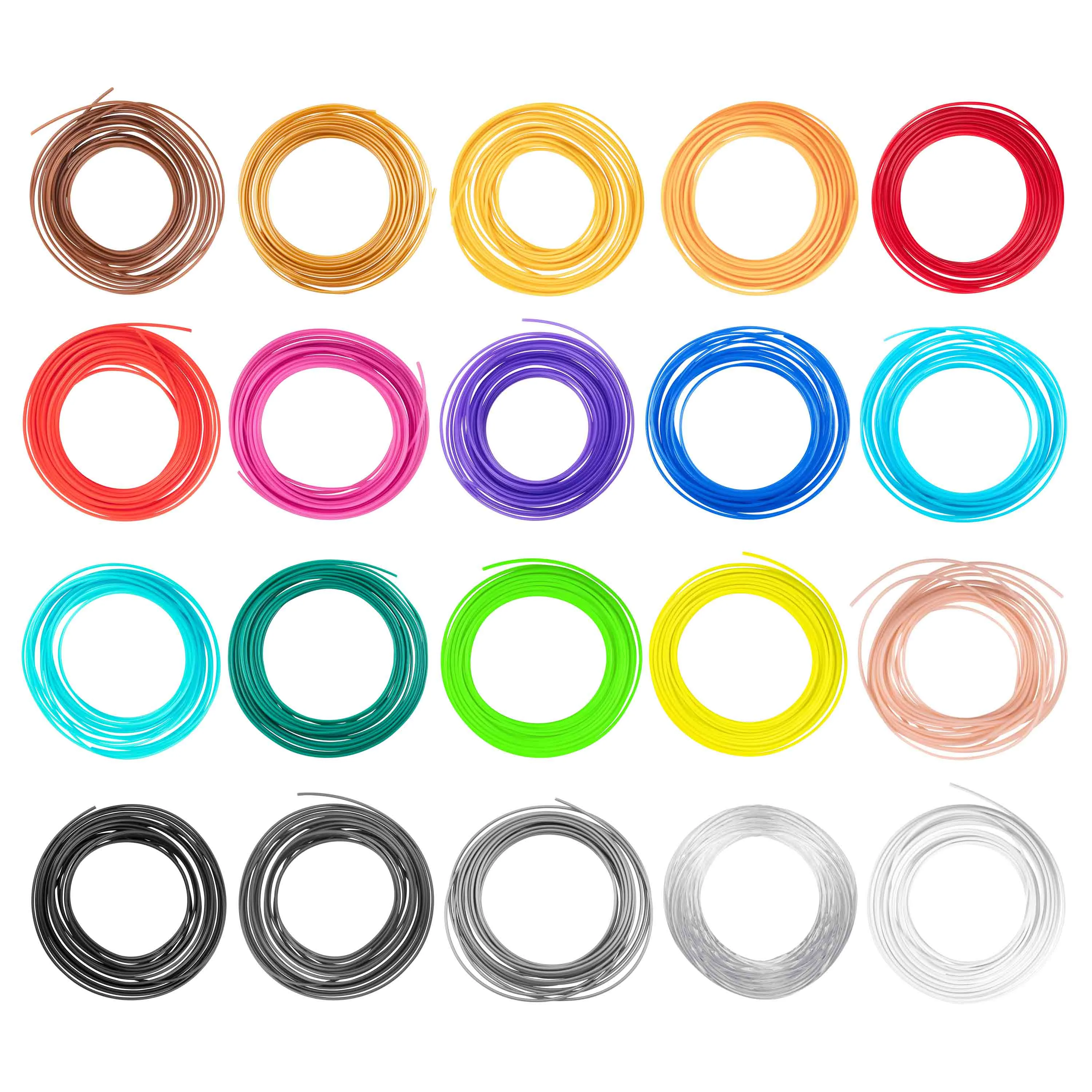 Універсальний набір картриджів 2E для 3D-ручки стане в пригоді для виготовлення 3D-шедеврів. Діаметр нитки – 1,75 мм. З огляду на температуру плавлення від 200 до 210 ℃, картриджі гарантовано набуватимуть оптимальної робочої консистенції для легкого й точного створення 3D-шедеврів. У комплекті наявні ниті 20 різних кольорів, довжина кожної – 5 м.
